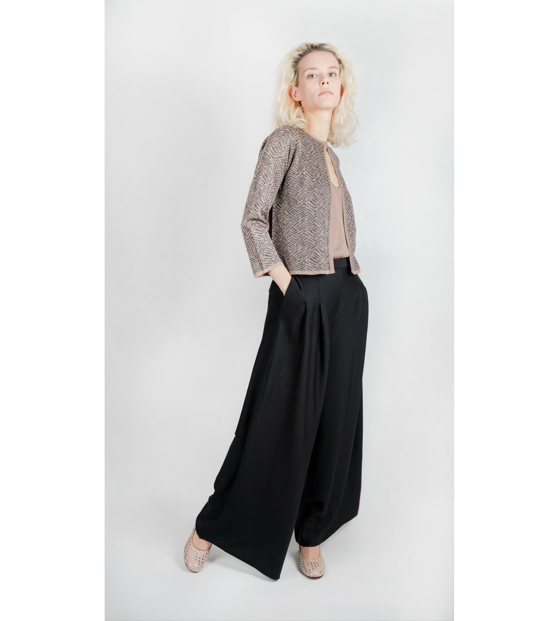 Eine Hochsitzende Hose mit weitem Bein aus Merinowolle.