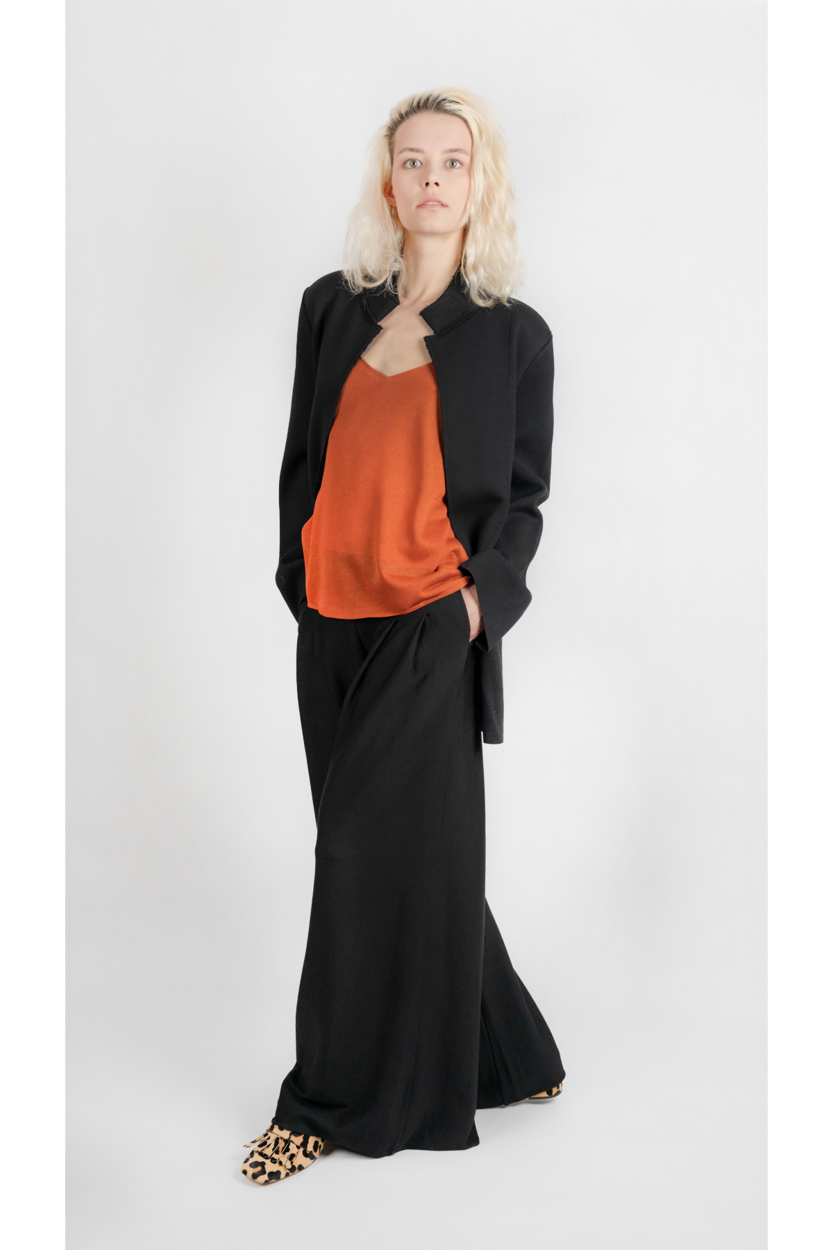 Gestrickte Hose mit weitem Bein 315 € 220 € Eine Hochsitzende Hose mit weitem Bein aus Merinowolle. Wybierz rozmiar Ilość: Do koszyka