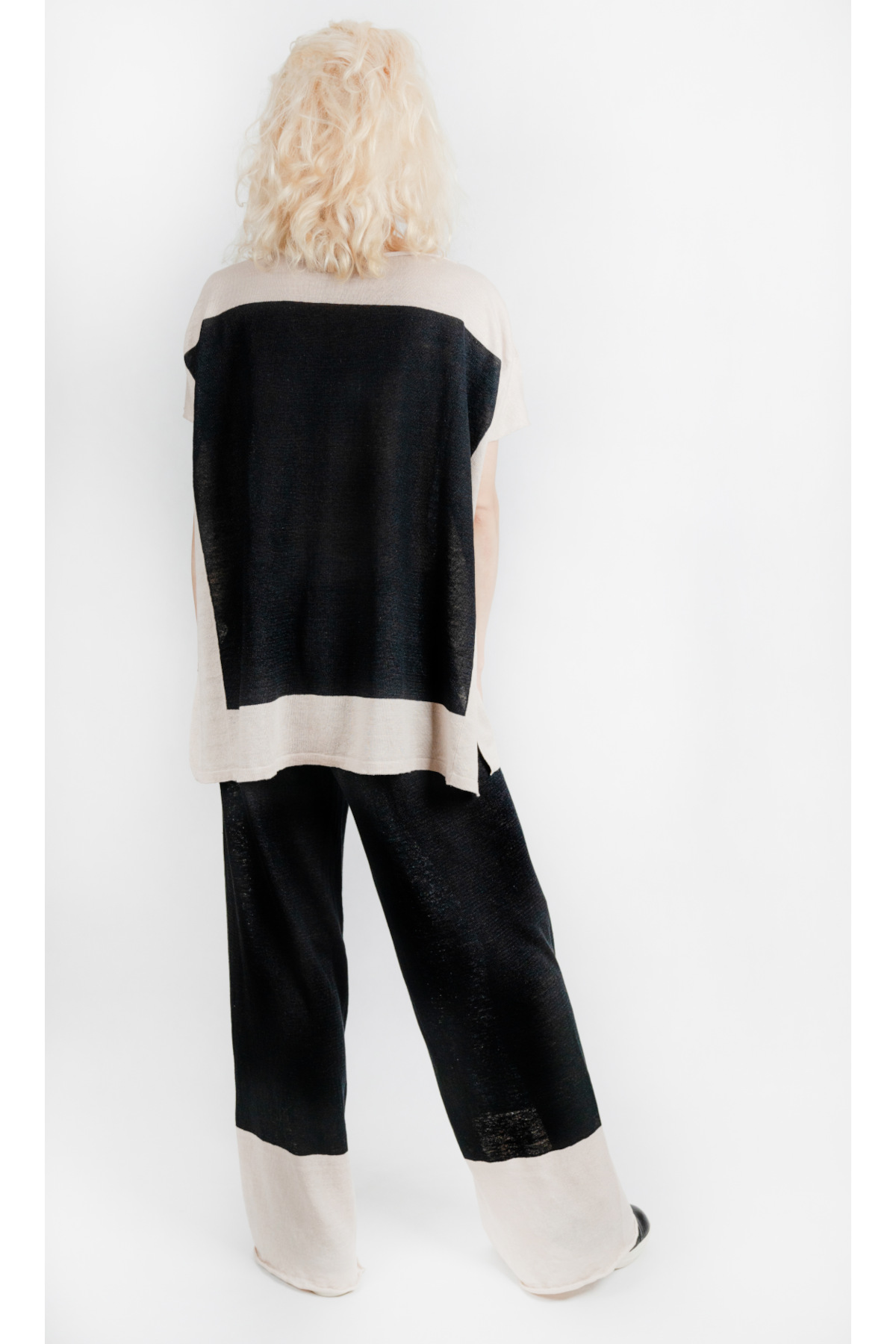 Eine elastische Mischung des lockeren Leinenanzug in sportlichem Look. Hochsitzende Hose mit weitem Bein und ein lockeres Schnitt des Oberteils.