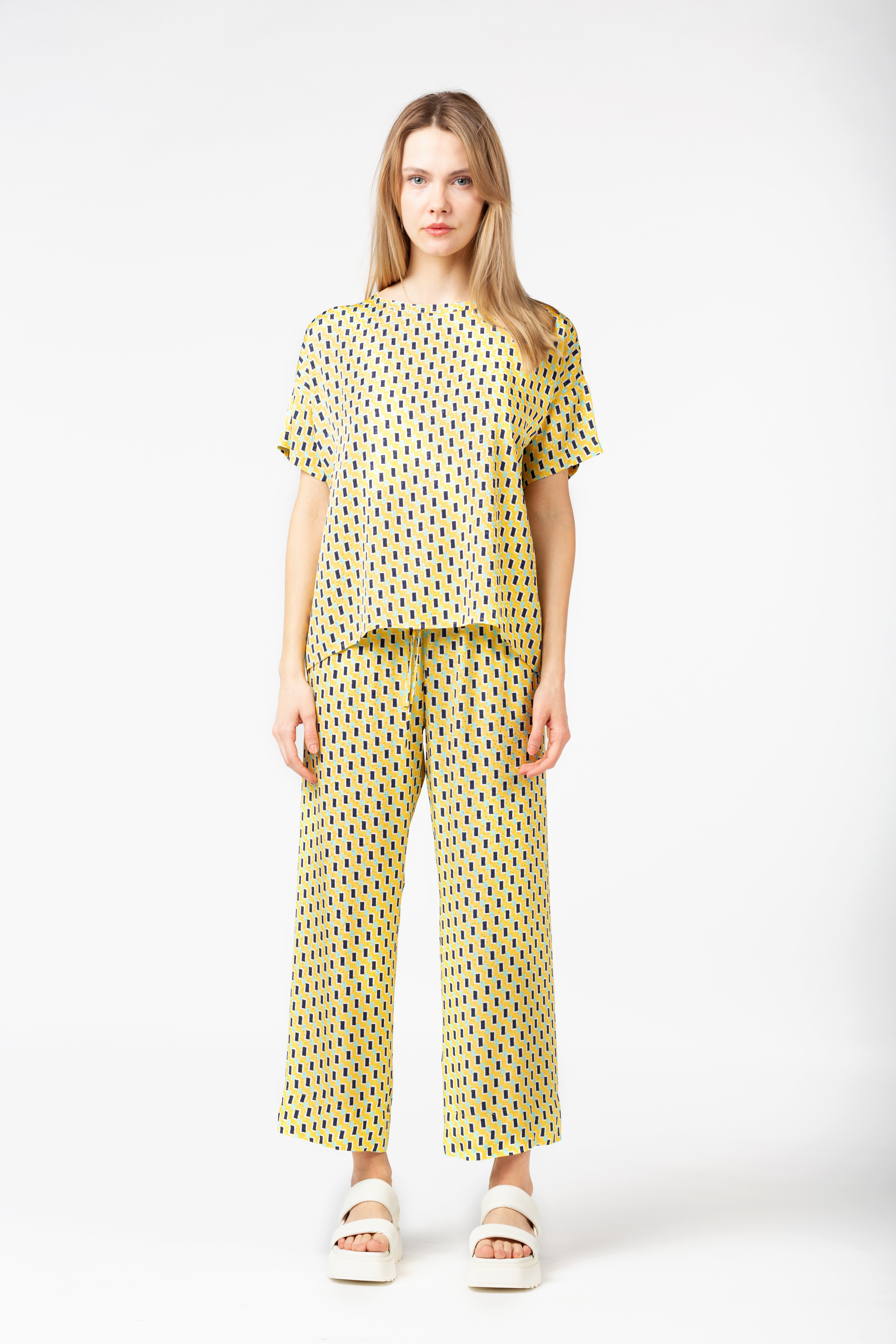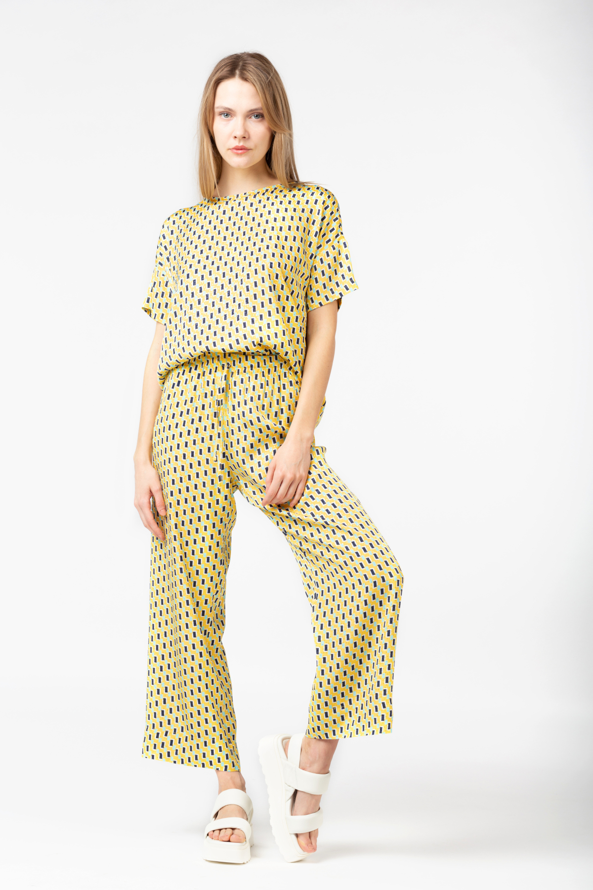 Eine bequeme Kombination aus Hose und Kimonobluse. Tragbar sowohl als Set als auch getrennt. Viskose bietet eine hohe Qualität und kühlt an heißen Sommertagen.