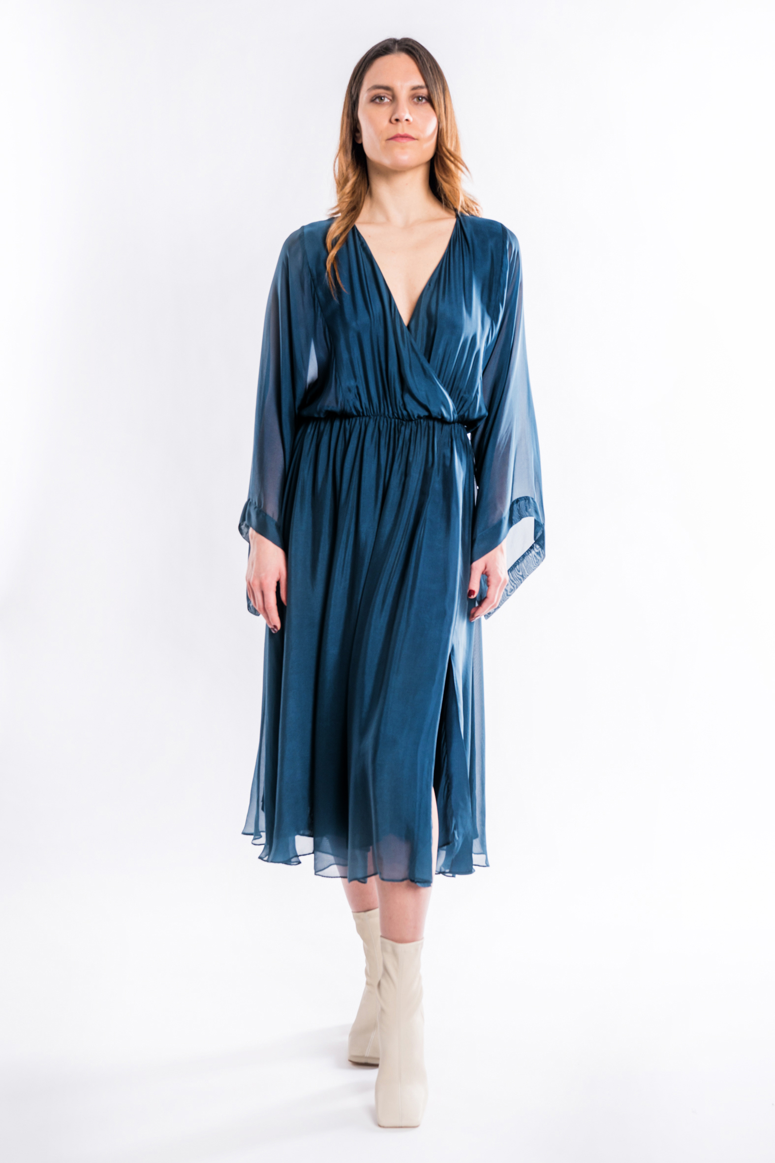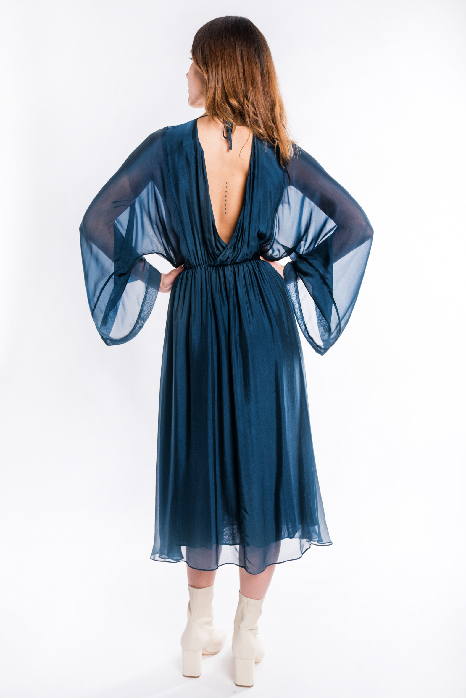 Dieses Cocktail/Abend Kleid ist ein ideales Outfit für jegliche Abendanlässe. Es hat Kimonoärmel und die Taille ist mit einem Gummiband versehen und schmiegt sich ideal an den Körper an.