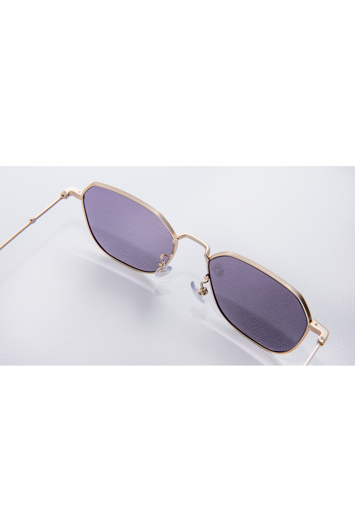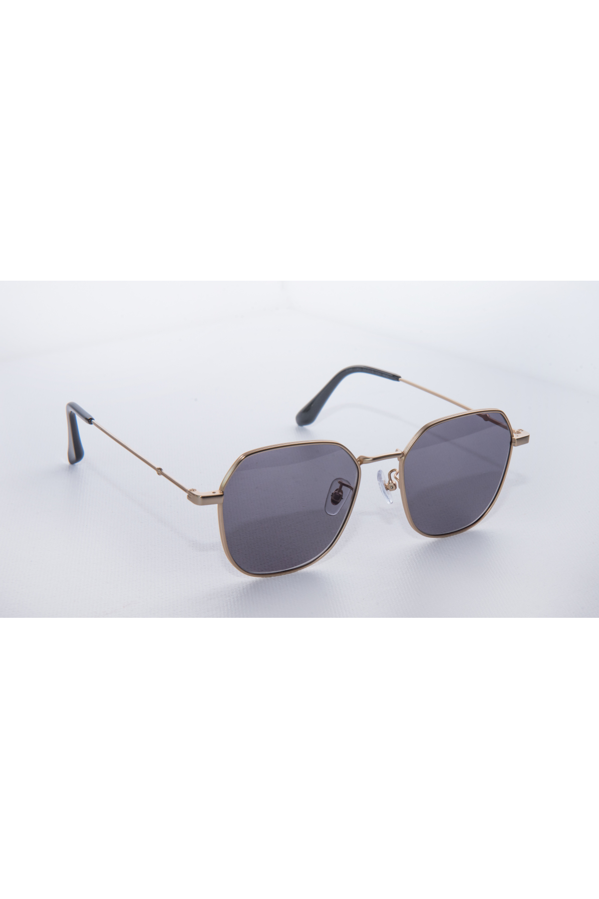 Diese Sonnenbrille mit eckigem goldenem Rahmen werden Sie mit Sicherheit gerne und oft tragen. Das Modell besteht aus goldenem Acetat. Die Gläser sind schwarze.