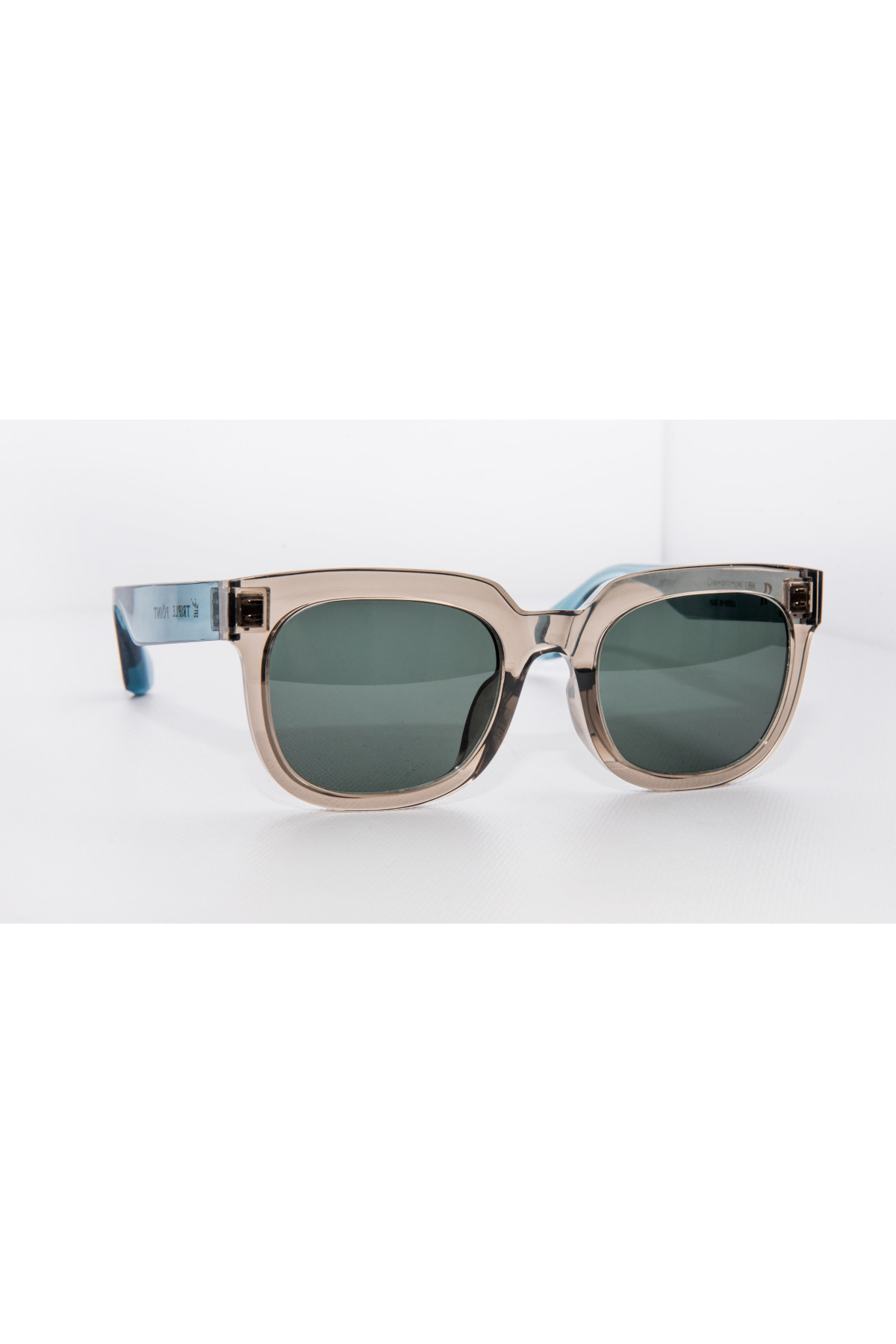 Die klassische, eckige Sonnenbrille aus Kunststoff kann man jede Saison tragen. Das Modell wurde in Südkorea gefertigt und ist mit schwarzen Gläsern ausgestattet.